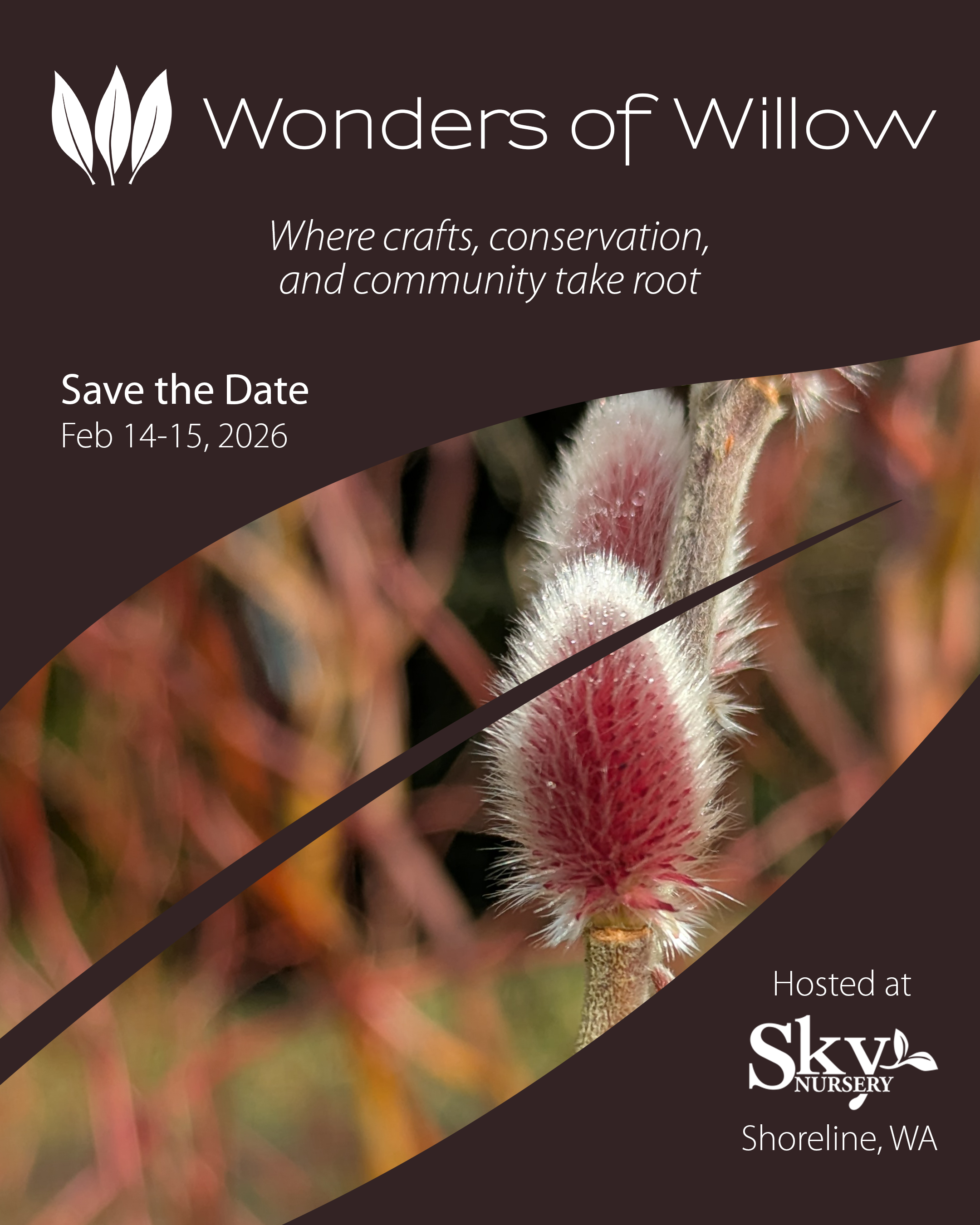 We’re excited to be participating in the Wonders of Willow event at Sky Nursery in Shoreline, Washington this February 14-15. We will be offering a presentation on building structures with living willow on Saturday the 14th at 12pm, and will have lots of willow on hand for purchase. In addition, you may purchase willow in advance, and pick up at the event.